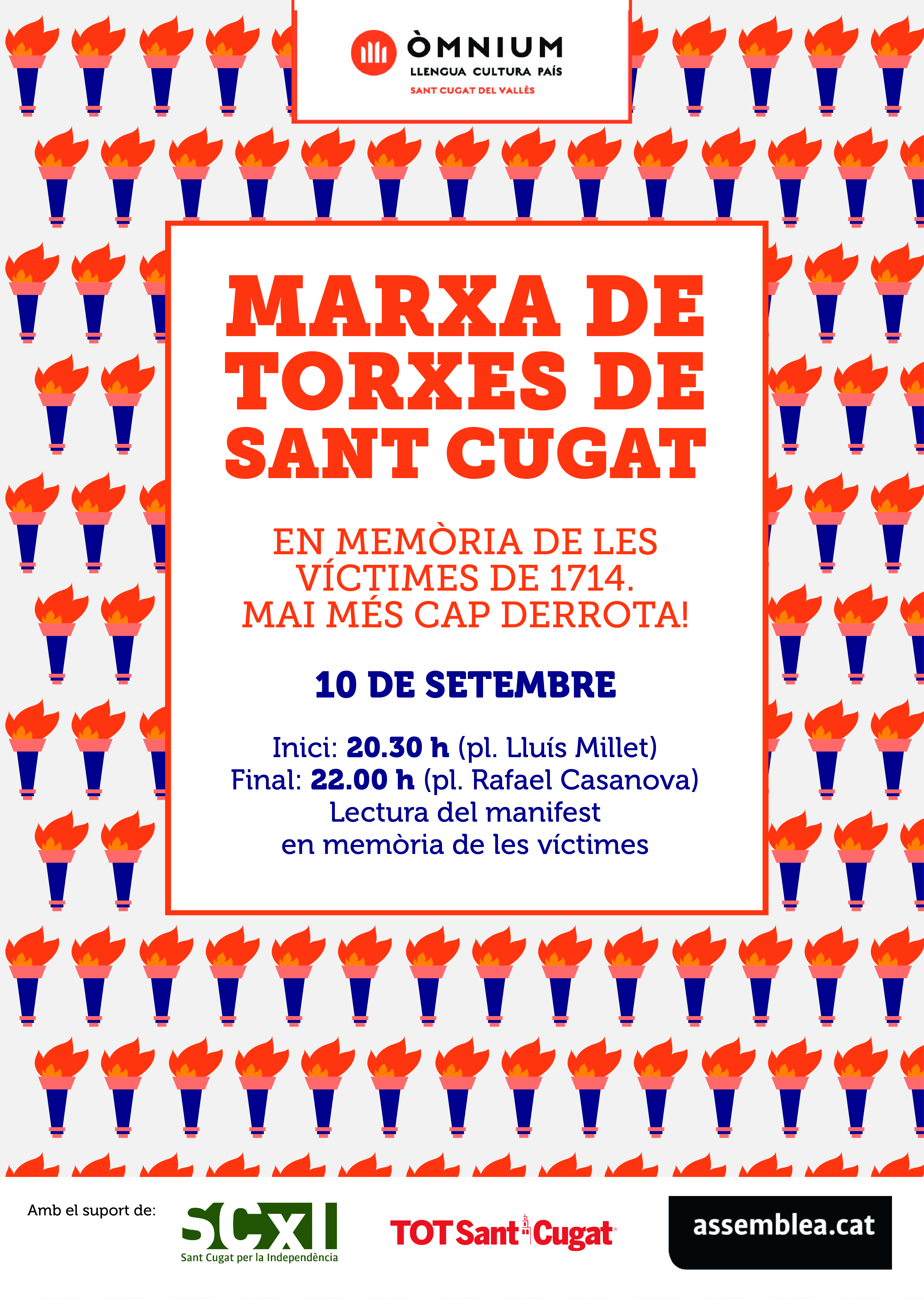 Des d’Òmnium de Sant Cugat i de Sant Cugat per la Independència us convidem a la segona Marxa de Torxes de Sant Cugat en memòria de les víctimes de 1714.