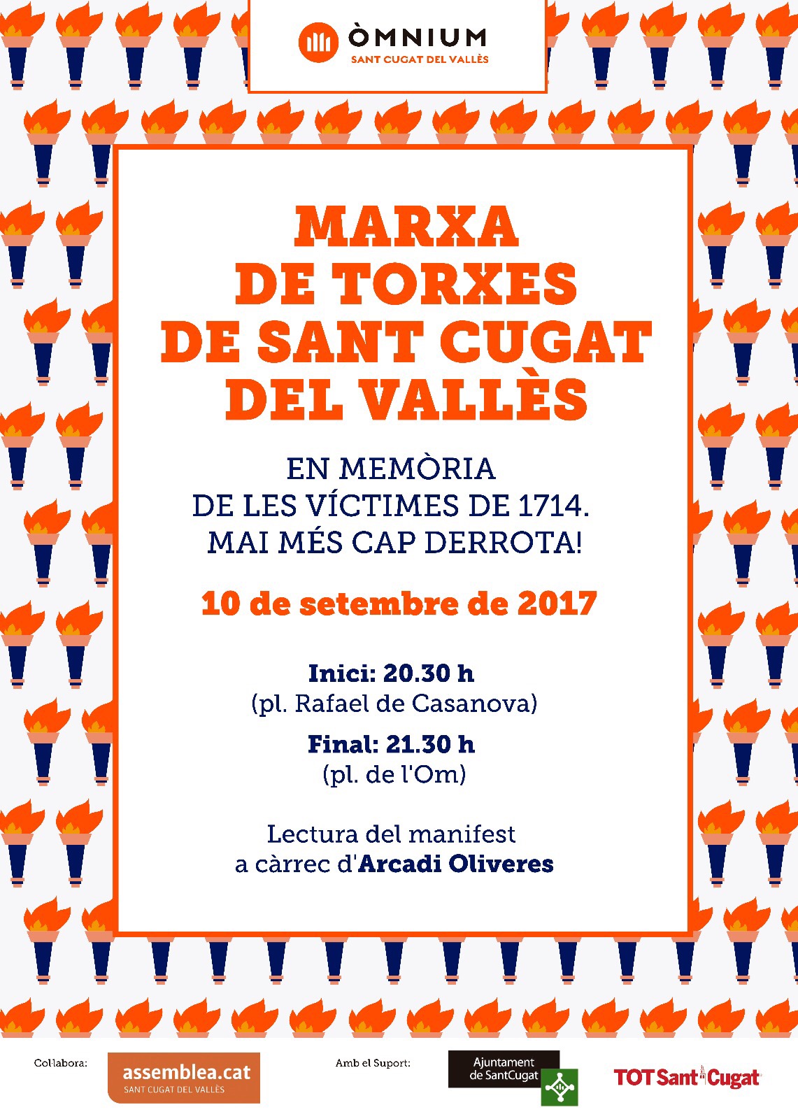 10 setembre: Òmnium us convida a la 3a Marxa de Torxes de Sant Cugat en memòria de les víctimes de 1714
