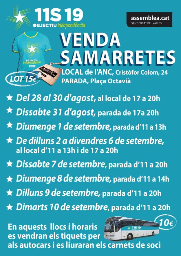 Horaris venda samarretes i places d’autocar a Octavià i a la seu.