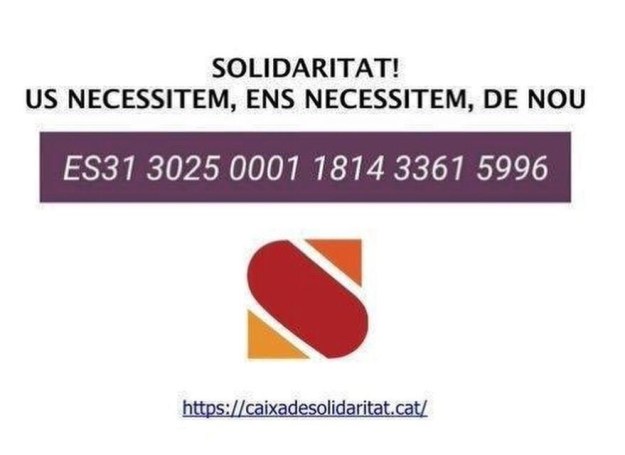 Queden pocs dies per fer el pagament de la fiança de 4,1 M d’euros imposada per l’Estat repressor al Govern que va fer possible votar el referèndum. Tornem a fer-ho, omplim la Caixa De Solidaritat. Fes un donatiu
