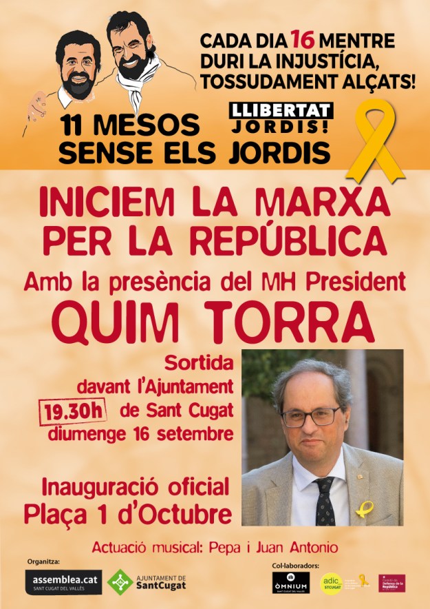 Vine a iniciar la Marxa per la República amb el MHP Quim Torra a Sant Cugat dins els actes dels 11 mesos sense els Jordis